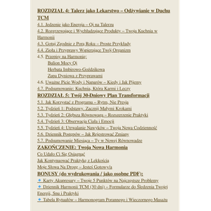 "Sekrety Harmonii z Medycyną Chińską" to Twój osobisty przewodnik. To nie jest zwykła książka, ale kompletny, 30-dniowy program transformacji, stworzony, aby pomóc Ci poczuć się lepiej i żyć w zgodzie ze sobą.